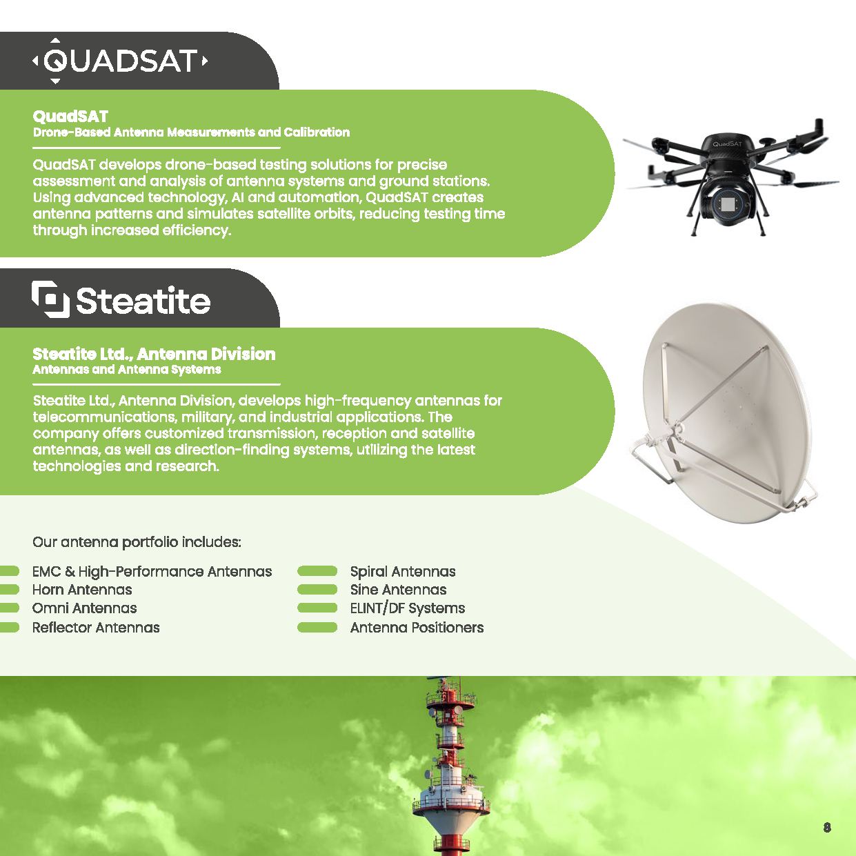 Quadsat ist ein innovativer Anbieter von UAV-gestützten Messsystemen zur präzisen Charakterisierung und Kalibrierung von Satellitenantennen. Mit hochauflösenden Antennen- und RF-Messungen direkt im realen Einsatzumfeld ermöglicht Quadsat eine schnelle, sichere und kosteneffiziente Inbetriebnahme sowie Performance-Überprüfung von Bodenstationen.